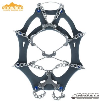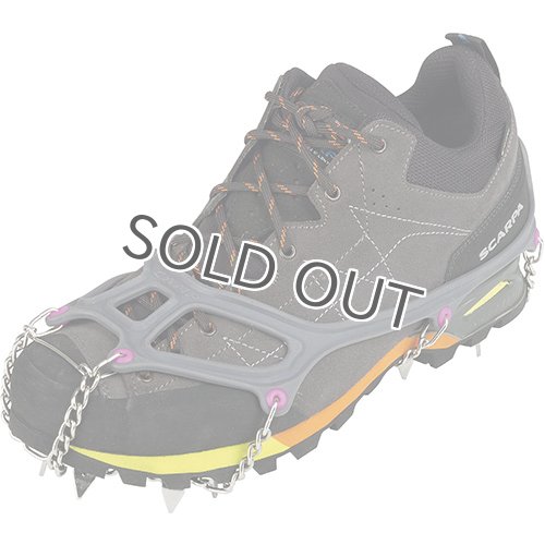 バンド部分には低温でも硬化しにくい柔らかな素材を用い、さびにくいステンレス鋼を使用したスパイク(爪)をチェーンで連結させることによりブーツの屈曲に柔軟に追従。全面スパイク仕様なので高い安定性を誇ります。