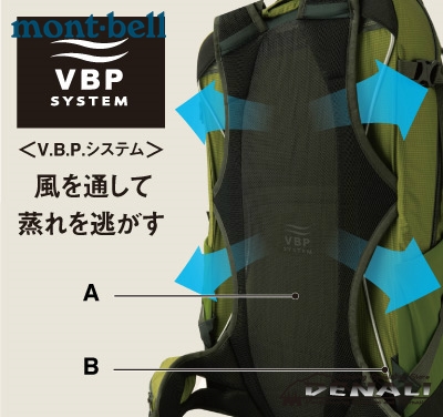 風が背中を通り抜け、蒸れを軽減するベンチレーションバックパネル(V.B.P.)を通常のバックパックに後付けできるオプションです。
