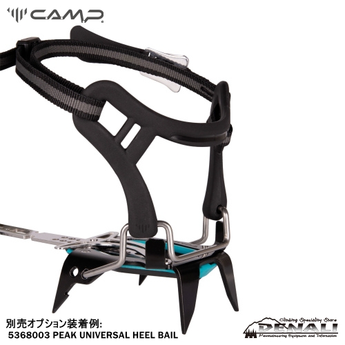 ・別売のユニバーサルヒールベイルを組み合わせる事でストラップタイプのクランポンとしても運用可能。