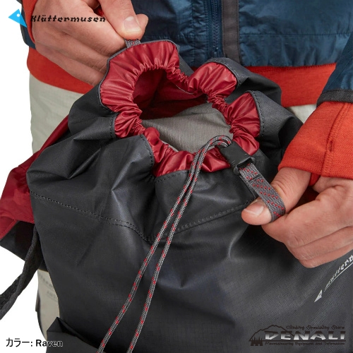 レティナ® ライト 200 デニール・リップストップ生地は、軽量で耐久性があり、耐水圧 10,000mm の防水性を誇ります。またボトム部には、伸縮性と柔らかさを兼ね備えた耐久性に優れたケブラー® ファブリックを使用。単なる軽量なバックパックとは一線を画する耐久性を誇ります。