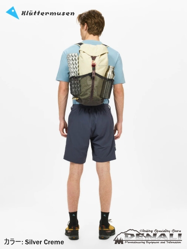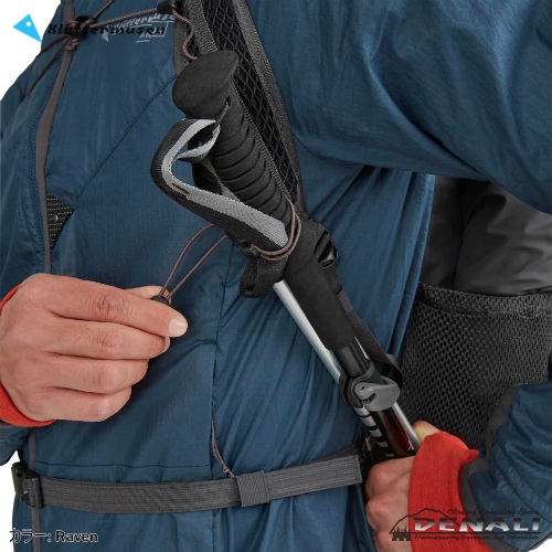 大型のサイドメッシュポケットには、ウォーターボトルやギアを入れることができます。ショルダーストラップのバンジーコードやトグルループでトレッキングポールやハイドレーションシステムを取り付けることができます。