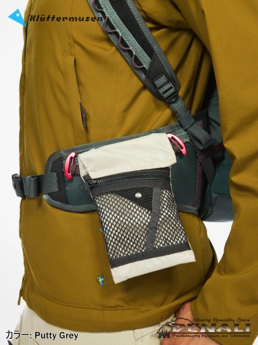 クレッタルムーセンのバックパックアクセサリは、コードストラップやトグルを利用して、バックパックのあらゆる場所に簡単に取り付けることができます。